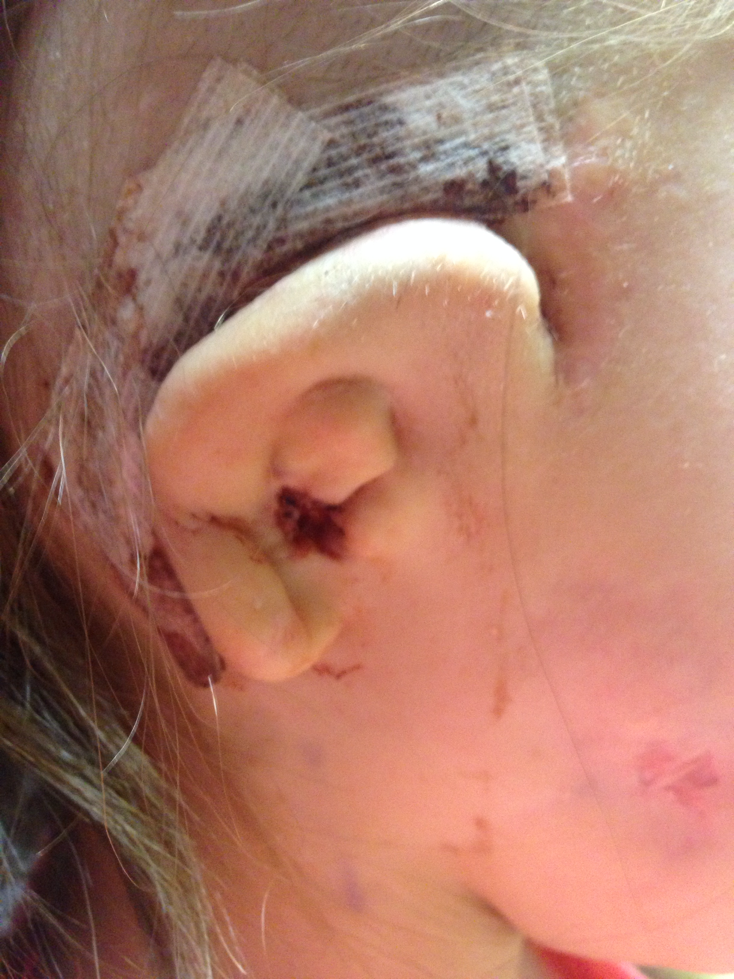 Progressively over the next 12 months, Dr. Harlan Muntz, Kambri’s, ENT-otolaryngologist at PCMC, performed five surgeries to construct an outer ear, using cartilage from her ribcage to form its shape and skin grafts from her stomach and thighs to cover the cartilage. Slowly, her new right ear began to match her left ear more closely.